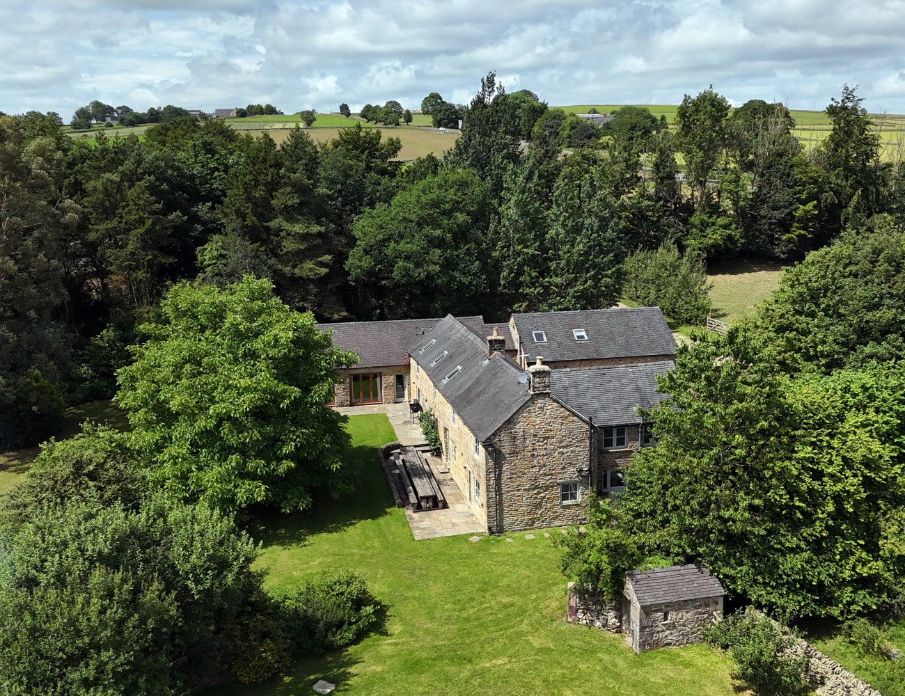 Stunning position Oak Tree Farm offers a beautifully eleven bedroomed farmhouse with flexible accommodation options for large groups up to thirty guests. Situated in a beautiful secluded rural position enjoying uninterrupted views of the Peak District. Scandinavian style wood fired hot tub and games room. Beautiful eleven bedroomed country farm house with seven ensuites, a family bathroom & two shared shower rooms