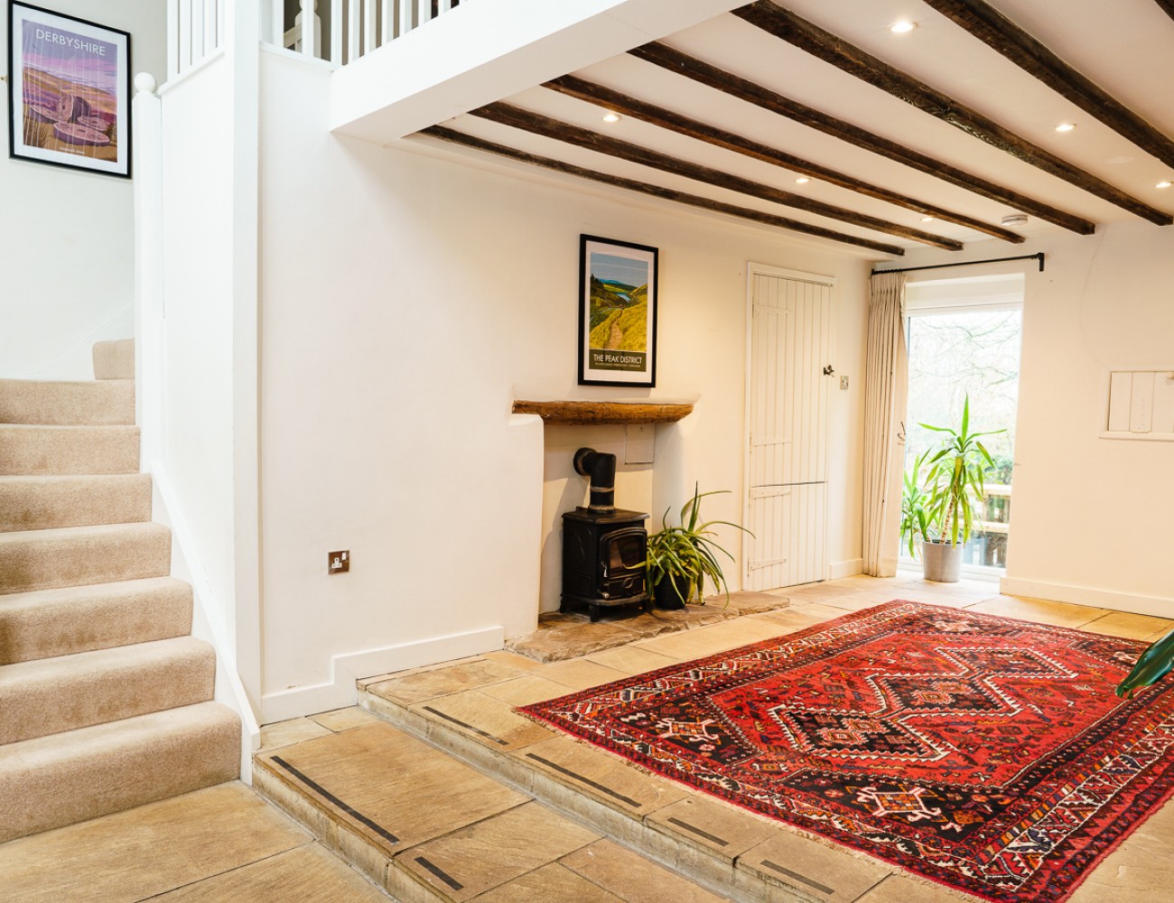 The property has been converted to a very high standard, and being positioned on the South Western edge of the Peak District National Park, the property is a great base from which you can explore some of the most well-known attractions of the Peak District. The Spa town of Buxton is nearby with its popular Opera House and less than a 20 minute drive away are the attractive market towns of Bakewell and Ashbourne. Some of Derbyshire’s finest stately homes such as Chatsworth House, Haddon Hall and Tissington Hall are all also within a half hour drive. There is some great walking and cycling routes nearby and for the more energetic The Roaches, with Hen Cloud and Ramshaw Rocks form a great grit-stone escarpment providing an abundance of rock climbing.